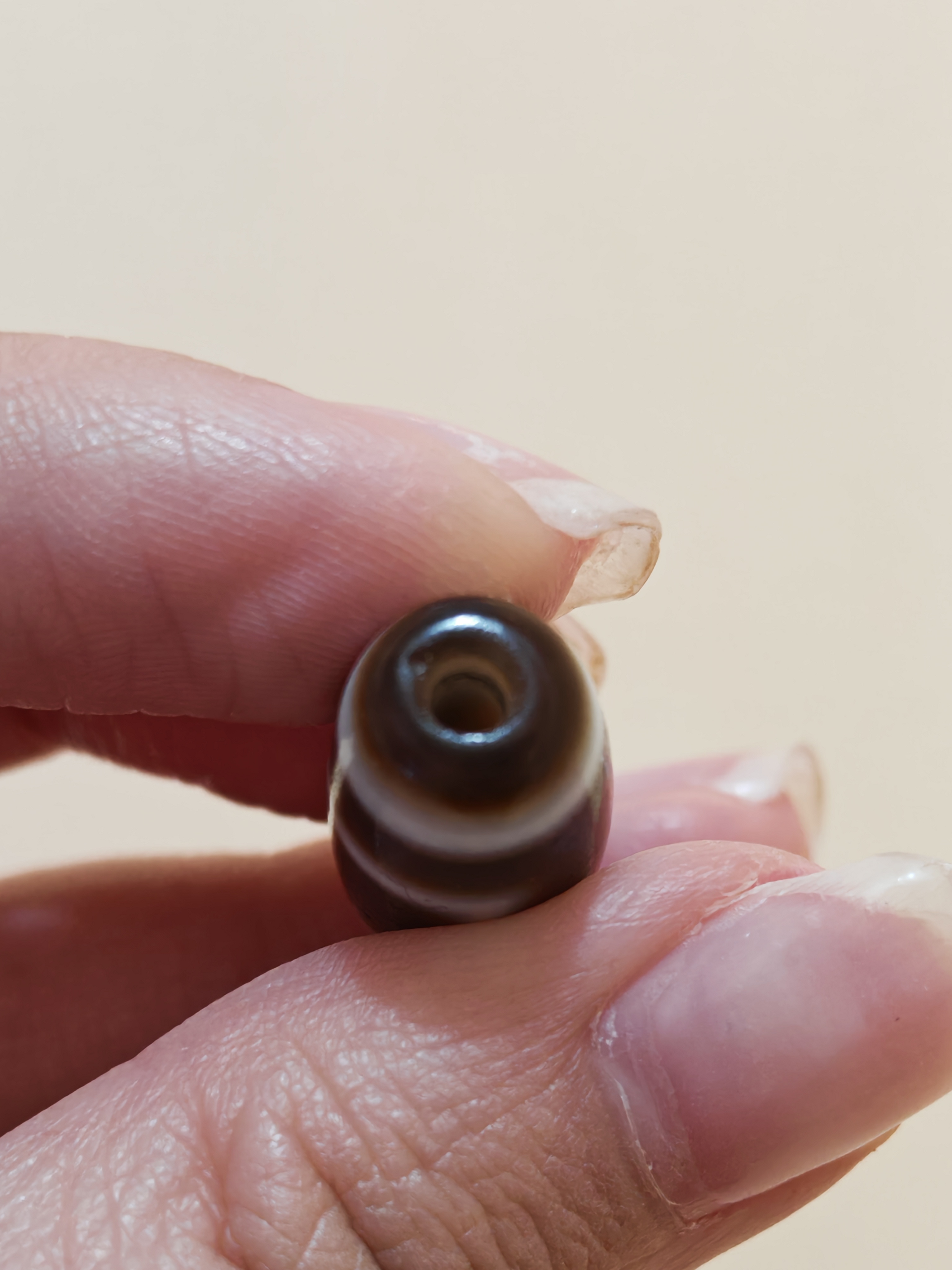 《黑白天地天珠》 241213 尺寸:28*11mm 天地天珠 1. 象徵「天圓地方」,代表天地和諧、陰陽平衡。 2. 頂端圓點為「天」,底部方紋為「地」,寓意接通天地能量。 3. 能擋災厄、增強氣場,穩定心神。 4. 天圓造型暗含處世圓融,地方紋路喻示腳踏實地。 適合人群: - 修行者:輔助冥想,提升靈性覺知。 - 壓力族群:需穩定心緒、平衡生活者。 - 領導者/創業者:象徵駕馭全局,決策穩健。 - 常遇挑戰者:祈求護佑,化解負面能量。