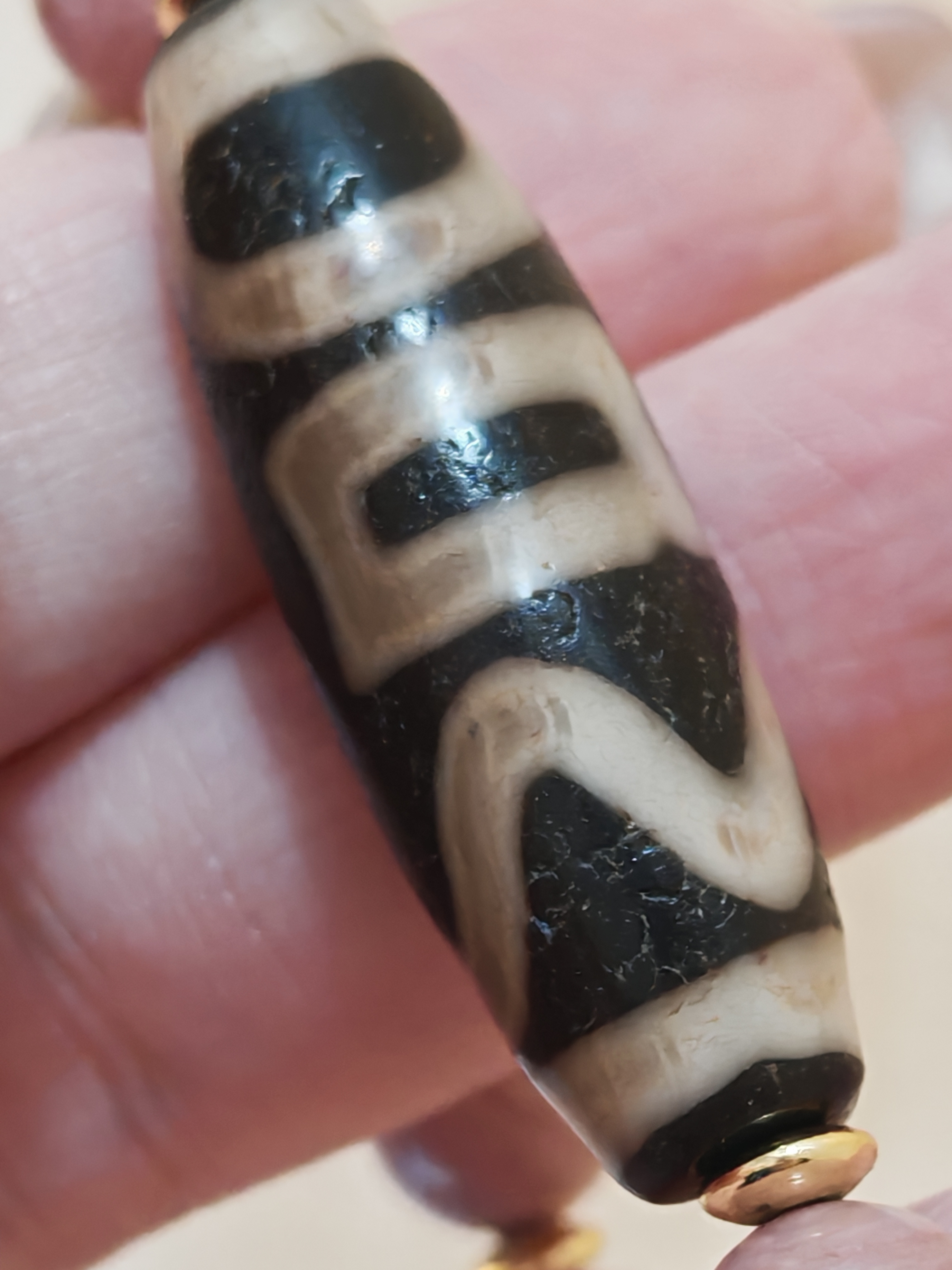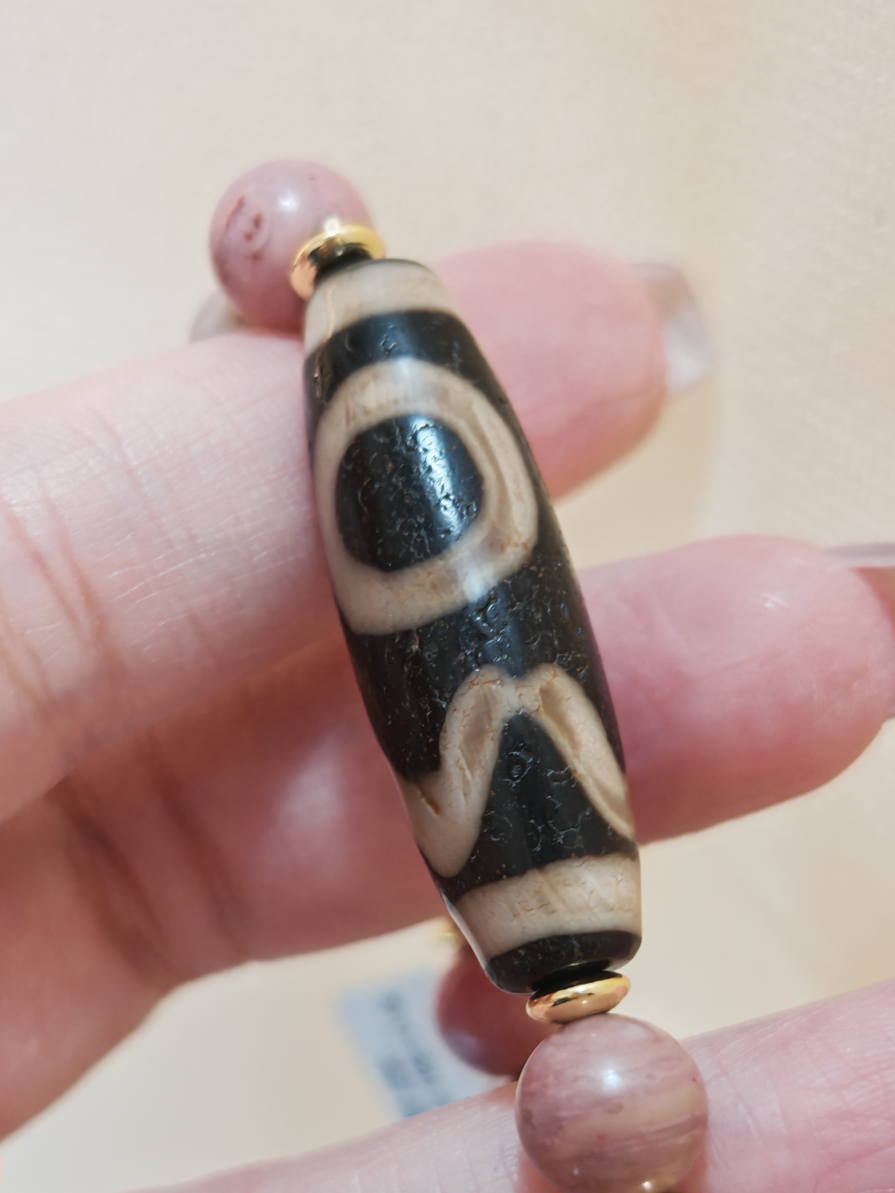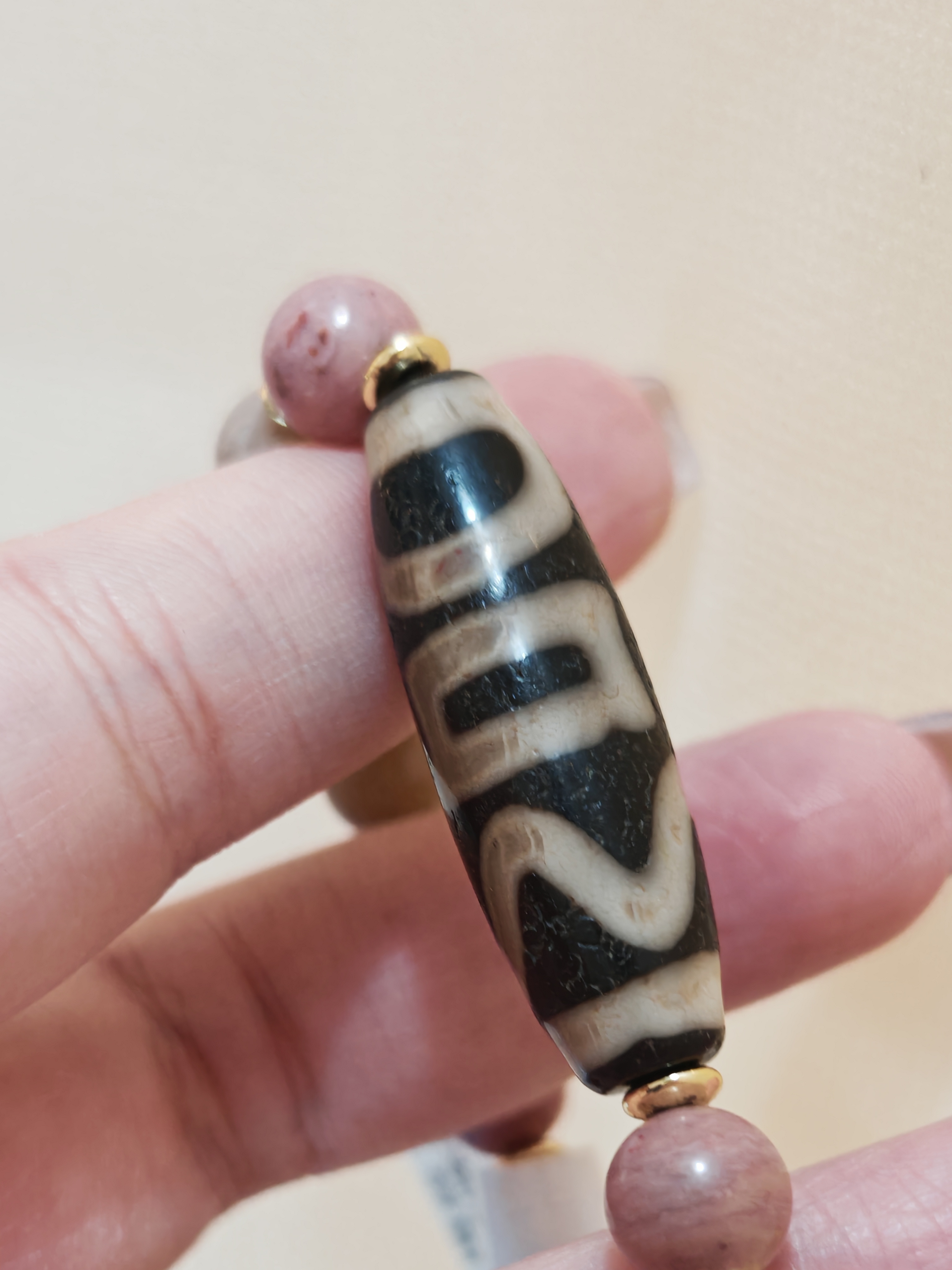 「牙黃息增懐誅天珠」1151038 款式:8mm紅木紋瑪瑙,可更改配珠 尺寸:36.3mm x 11mm 息增懷誅天珠寓意: 1. 息(平息災厄) -化解障礙、消除負能量,帶來平靜安穩。 2. 增(增長福慧) -增益財富、智慧、人緣,助事業與修行精進。 3. 懷(懷柔聚緣) -凝聚貴人善緣,增強魅力與人際和諧。 4. 誅(誅滅邪障) -破除厄運、抵禦外邪,守護身心安定。 特別適合: -修行者:需平衡能量、提升禪定境界者。 -職場人士:欲突破事業瓶頸,招引貴人助力者。 -常感運滯者:化解小人糾紛或長期不順者。 -求身心安定者:面對壓力需內外護持者。 -重視緣份者:盼改善人際、家庭或情感關係者。
